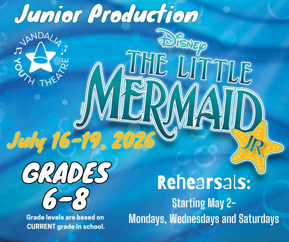 The Little Mermaid Jr. is our Junior cast show and we welcome students CURRENTLY in 6th-8th grade